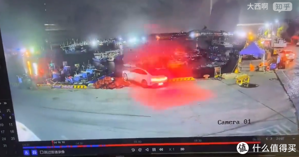 在这个时间点,尾灯是示廓灯,不是刹车灯,刹车灯亮了会特别明显,也就是下图。