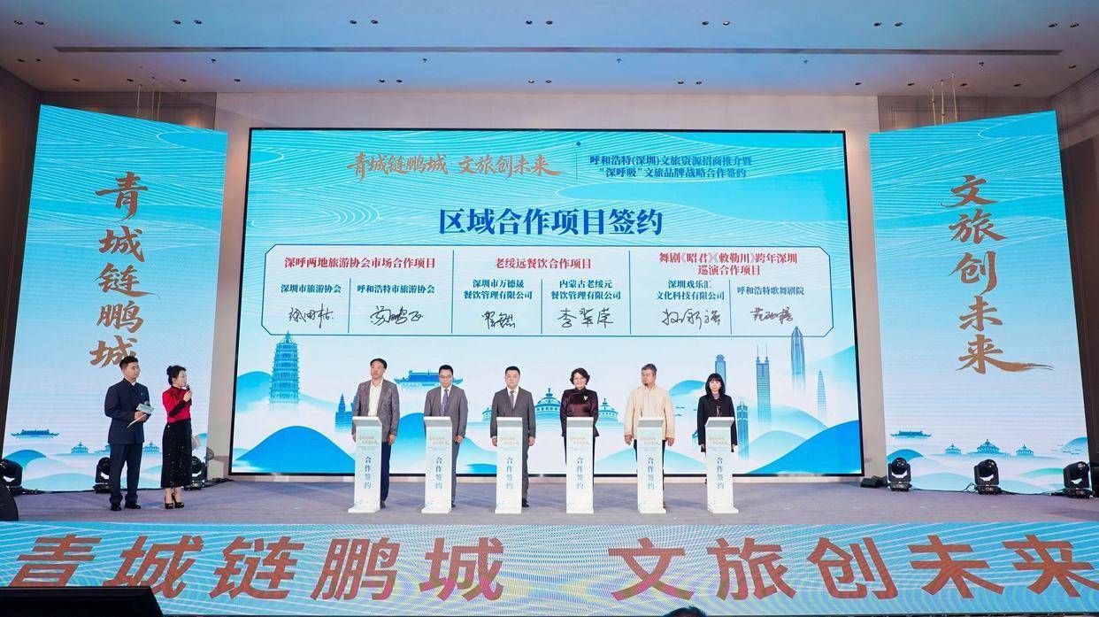 活动现场集中签约10个合作项目。其中,两地文旅部门签署合作框架协议,旅游协会达成市场合作协议,确立了部门对话与行业协作的长效机制。引入中旅数智科技、驴迹科技集团等深圳企业,对呼和浩特市“老牛湾黄河大峡谷旅游区”进行规划运营,对土左旗景区进行提质升级,实现深圳资本创新与呼和浩特文旅资源的融合,共同提升优质文旅资源的市场影响力和竞争力。同时,“引客入呼”联络办公室揭牌、“呼和浩特—深圳”文旅联盟正式启动。